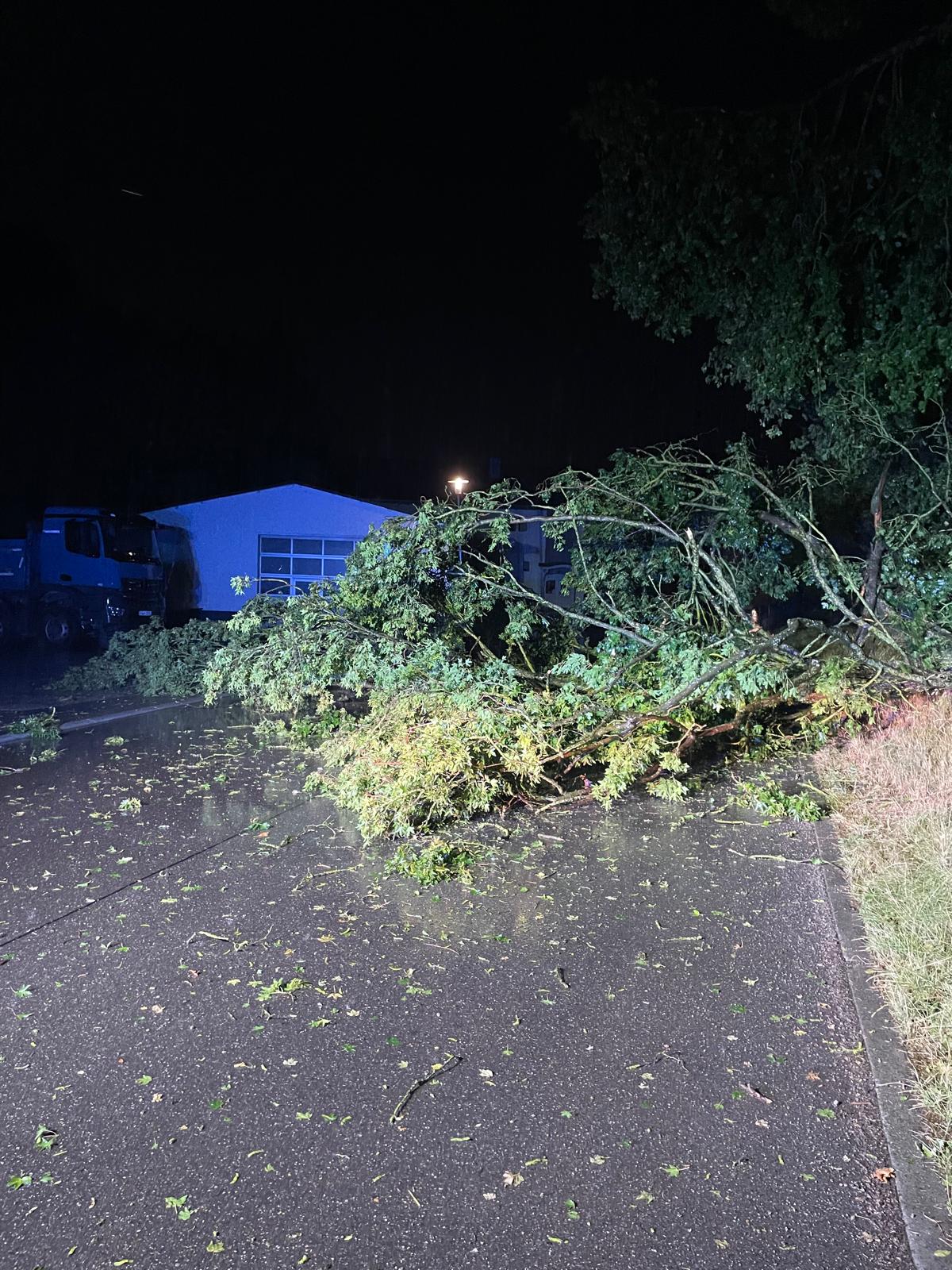 Die Feuerwehr wurde im Zuge eines Unwetters zu einem umgestürzten Baum alarmiert. Durch starke Windböen war ein Baum auf die Fahrbahn gestürzt.